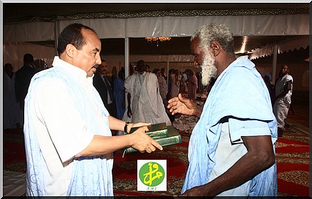 Au cours de la réception, des exemplaires du Saint Coran édité en Mauritanie ont été distribués. C'est ainsi que le Président de la République a remis un exemplaire du Saint Coran à un citoyen parmi les invités.