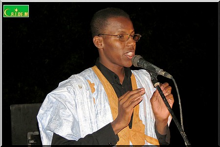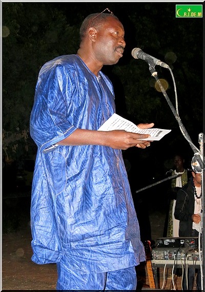 Ce soir-là , c’est toute la diversité mauritanienne qui a été représentée à travers la poèsie (hassanya, arabe classique, poular, français, soninké, wolof) pour clôturer les Traversées Mauritanides. Pendant plus de trois quarts d’heure, Djibril Zakaria Sall, Diakité Seck, Nadjirou Hamet Sy, Maro Diagana, Sidi Emjad et Maodo Sarr vont se succéder sur la scène.
