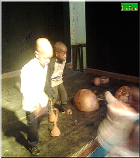 Deux contes ont été présentés par le conteur Siré Camara aux enfants âgés de 3 à 6 ans avec leur accompagnatrices. Le premier raconte l’histoire de l’enfant qui sauve un caïman, il l’amène dans l’eau ; mais arrivés au fond de la rivière, le caïman décide de le manger… Une gentillesse se paye-t-elle donc par une méchanceté ?