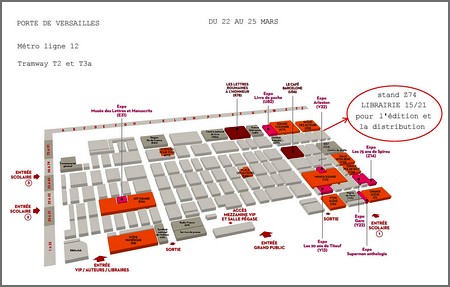 J'accompagne le directeur de la Librairie 15/21 au Salon. J'aurai grand plaisir d'y accueillir, sinon vous-même, du moins tous vos amis et connaissances que vous aurez eu le bon goût d'informer, et de leur dédicacer, éventuellement, leur(s) exemplaire(s).
