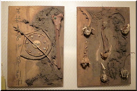 Le verdict est sans appel. Dans cette exposition, Hussein Haidara installe le visiteur sur la chaise de l’éternelle dualité du bien et du mal, du bonheur et du malheur, de la lumière et de l’obscurité, met en scène le mal de l’ours qui incarne Dieu de l’optimisme, le mal de la gazelle qui incarne Dieu de la progéniture, la Rhinocéros, déesse de la paix et de la guerre… "On y trouve également de multiples similitudes avec le système traditionnel de divination restitué sur le sable ou évoquant la disposition des cauris qu'on jette par terre", décrit Yehdih Tolba.