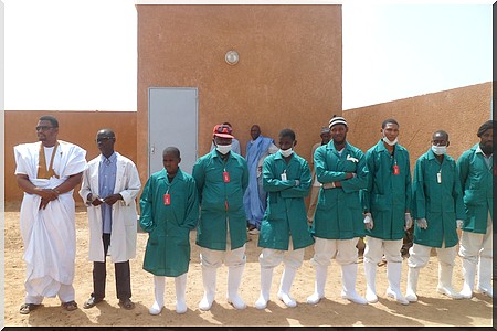 Cette cérémonie s’est déroulée en présence du Hakem mouçaid, des responsables du centre des ressources N°CR2 d’Aleg, des représentants des ONGs locales, des notables, des élus municipaux et des bouchers en tête revêtus de combinaisons vertes, avec des gants en plastiques aux mains, de masques protégeant le nez et de bottes blanches et couteaux en mains.