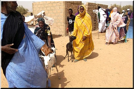 L’association mauritanienne pour l’auto-développement (AMAD) dans son programme destiné aux ménages vulnérables a procédé ce matin 29 Mai 2013 à la distribution de 60 chèvres pour les 13 ménages des villages de Daghvegh (8 ménages) et Dar El Khadra (5 ménages).