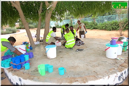 A quelques mètres de là , les volontaires de l’association Almoustaqbal font des va-et-vient sans arrêt pour servir de la soupe aux légumes, des dattes, du zrig. Bouha Ould Sidi, un des membres de l’association, veille au grain, donne des instructions. "Chaque jour, des centaines de personnes viennent manger ici. Il faut donc avoir l’œil sur tout pour que ceux qui viennent ici se sentent à l’aise comme chez eux", explique le jeune homme.