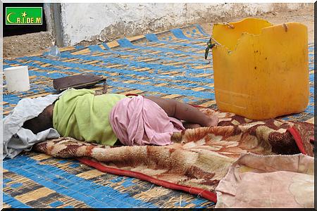 Ici, dans cette famille, on ne vit que des recettes de la mendicité de papa. Il y’a quelques années, en 2008, Ahmed Mahmoud Mohamed Elkory procédait au coffrage pour la construction d’une terrasse, lorsqu’il a cru assister au dernier jour de sa vie. En effet, les planches avaient lâché. Il y’eut des morts et des survivants, dont Ahmed Mahmoud Mohamed Elkory. Il s’en sortira avec l’incapacité de ne plus disposer des planches. Il réussira tout de même à construire deux chambres dont l’une qu’il partage avec toute sa famille.