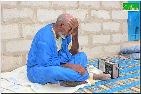 Toute l’après-midi de ce mercredi 7 août, le vieil Ahmed Mahmoud Mohamed Elkory l’a passé sur son unique matelas colonisé par les puces. L’extrême dénuement l’a livré aux mains de la mendicité qui l’a condamné à être l’ombre de lui-même. A quelques mètres de lui, des restes de repas, des excréments de chèvre décorent l’environnement.