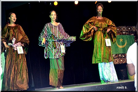 trés belle filles auquelles je reproche d'accepter cette manipulation visant à montrer un seul visage de cette mauritanie plurielle que nous esperons un jour voir le jour ce defile represente la mauritanie raciste ,extremiste qui ne reconnait pas l'existence de l'autre , qui veut manipuler les medias en montrant un seul visage de cette mauritanie0. ou sont les Mele7fas qui symbolise l'habit tradionnelle de ce vrai mauritanie profonde? il suffisait juste habiller des mannequins à defaut de trouver une maurresse qui accepterait de défiler car c'est contraire à notre réligion , Non les oorganisateurs n'ont pas pensé à cela car sa serait contradictoire avec leur agenda
