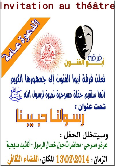 Espace Culturel - Ce jeudi 13 février à 17h 30, l’Espace Culturel vous invite au théâtre. Les jeunes qui jouent viennent pour la plupart du quartier d’Arafat.