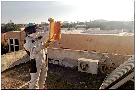 M.A.A : C’était long mais prudent, tout d’abord : j ai commencé par l’importation de deux ruches du Maroc que j’ai mises l’une à yaghref et l’autre sur le toit de ma maison à l’Ilot C pendant une année sans intervention humaine. Le constat était surprenant : les ruches étaient surpeuplées d’abeilles et regorgeaient de miel donnant ainsi le feu vert pour la suite.