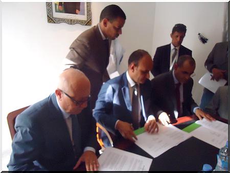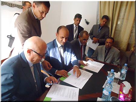 ZFN - Le Ministre des Pêches et de l’Economie Maritime, Monsieur Nani ould Chrougha et le Président de l’Autorité de la Zone Franche de Nouadhibou, Monsieur Mohamed ould Daf, ont signé ce jeudi 15 Mai 2014 avec Monsieur Said Alj, Président Directeur Général du Groupe UNIMER leader mondial dans les conserves et semi-conserves de petits pélagiques, un protocole d’accord pour l’implantation d’un complexe industriel de transformation et de valorisation des espèces pélagiques dans la Zone Franche de Nouadhibou en Mauritanie.