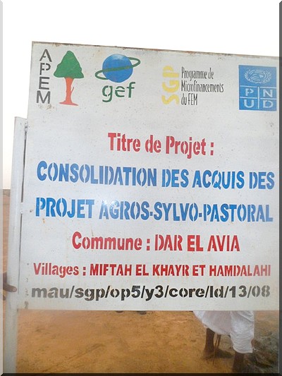 Albert Camus Diop - En marge de la cérémonie commémorative de la semaine nationale de l’arbre à Miftah El Khaîr et Hamdallaye, les responsables de l’Ong APEM sous la conduite d’Amadou Tidjane Guèye, coordinateur national de l’Ong APEM en Mauritanie ont reçu la visite de leurs partenaires du PNUD représentés par M. Bâ Amadou et Ely O Mohamed El Hadj venus s’enquérir de l’état d’avancement des travaux de construction du barrage réalisé par l’ONG APEM avec l’appui financier de SGP, du FEM et du PNUD dans le cadre du projet intitulé « Consolidation des Acquis des Projets Agro-Sylvo-Pastoraux».