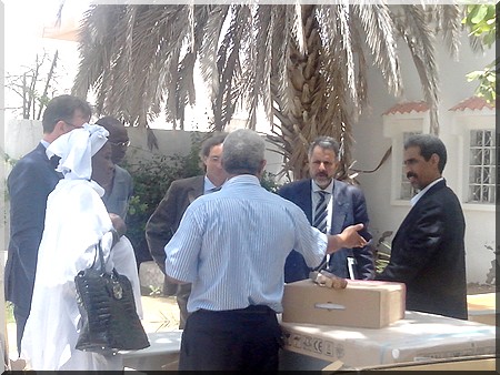 A propos des équipements des poissonneries objet de la cérémonie, ils comportent 3 congélateur coffre, 3 tables de travail, 3 tabliers de protection fabriqués en plastique, 3 balances (3/15 kg), 3 armoires métalliques (1,8/0,9m) et des lots de petits matériel de travail (écailleurs, couteaux et gants).
