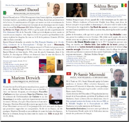 Il s’agit de la Marocaine Siham Benchekroun, de la Francomauritanienne Marième Mint Derwich, du Tunisien Samir Marzouki, du Malien Ousmane Diarra et de la Sénégalaise Sokhna Benga. Sans oublier la présence des Mauritaniens Mohameden Ould Ahmedou, professeur de mathématiques en Allemagne, Pr Cheikh Saadbouh Kamara, Beyrouk, Mamoudou Lamine Kane, Abdel Kader Mohamed, Amadou Bâ, Mamadou Kalidou Bâ, Mbouh Séta Diagana, Mohamedou Hdana, Sidi Lemjad, Ly Djibril, mais aussi des acteurs de la société civile et culturelle.