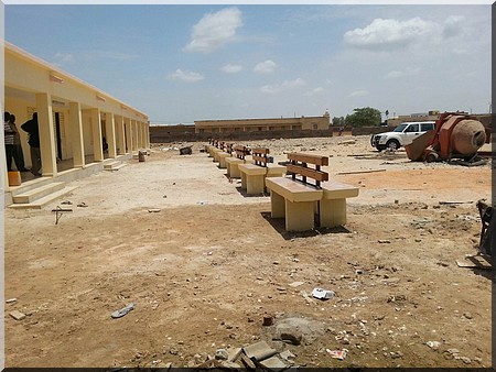 Ce sont en tout 53.000.000 d’ouguiyas qui seront mobilisés avant le lancement des travaux dont la mise en œuvre sera supervisée dans toutes ses phases par une équipe du CCME. Au bout, ce sont des travaux composés de quatre grandes nouvelles classes avec deux vérandas entièrement équipées en tables-bancs et bureaux complets pour enseignants, cinq latrines pour garçons et filles, deux fontaines à eau potable, huit doubles-bancs dans la cour de l’école et bientôt des arbres fruitiers et des arbres d’ombrage, la construction d’une bonne partie de la clôture de l’école qui sont livrés ce 27 novembre 2014. Le concours des Fondations Hoffmann et FIBA a été décisif dans la réalisation du projet.