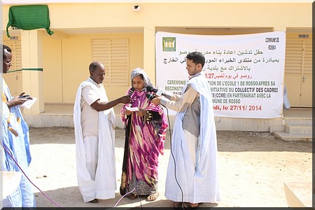 CCME - Ce jeudi 27 novembre 2014, le Collectif des Cadres Mauritaniens Expatriés a remis à M. Sidi Diarra, maire de la Commune de Rosso, les clefs des nouveaux bâtiments construits dans le cadre des travaux de réhabilitation de l’école 1 de Rosso.