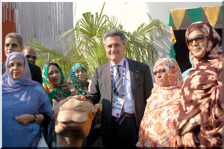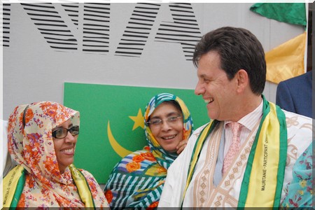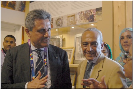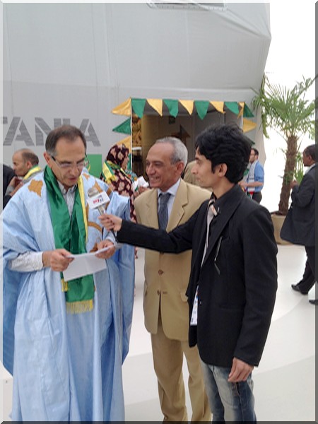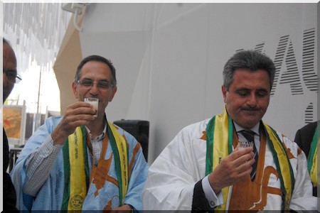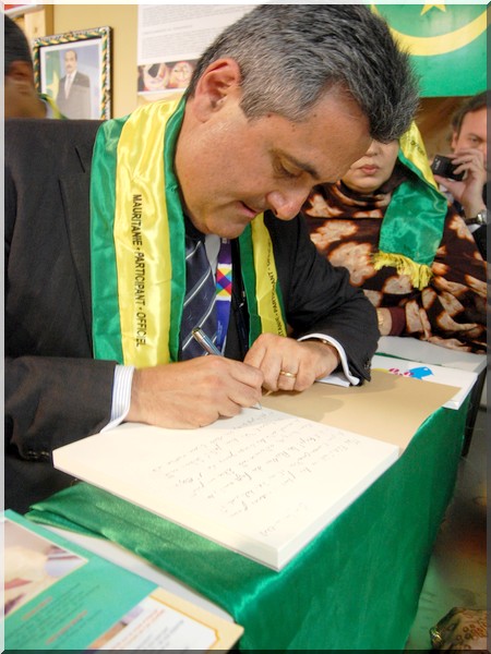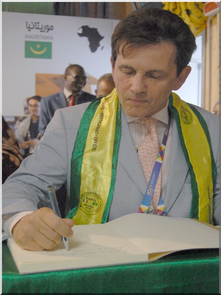 Drapé de boubous mauritaniens et d’écharpes aux couleurs nationales, les hôtes de marque ont signé à tour de rôle le livre d’Or du Pavillon national. Filippo Ciantia a noté que « la Mauritanie est un pays de grande culture.