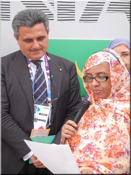 Et aussi en présence de madame Mariem mint Aouffa, Ambassadeur de Mauritanie en Italie, de madame El Alia mint Menkouss, Secrétaire Générale du Ministère du Commerce, de l’industrie et du Tourisme, de monsieur Oumar Ould Abidine Sidi, Commissaire général aux expositions de Mauritanie, du Commissaire Général adjoint du Pavillon de l’Union Européenne à Expo Milan, de nombreux hauts fonctionnaires mauritaniens, notamment Sid’Ahmed Ould Cheikhna, Directeur Général du Développement de la Zone Franche de Nouadhibou, de monsieur Wane Abdoul Aziz, Secrétaire Général de la Chambre de Commerce et d’Industrie de Mauritanie et tant d’autres compatriotes de la diaspora mauritanienne à Milan et bien entendu tout le staff du Pavillon national..