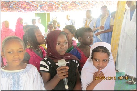 La cérémonie d’ouverture a débuté par la lecture de quelques versets de coran qui ont été lus par une élève suivi du mot de bienvenue du directeur de l’établissement, Sidi Thioub et du discours des élèves prononcé par Toutou Mint Bouh qui a remercié les parents d’élèves, les maîtres et les profs qui contribuent dit-elle, sans cesse, à leur encadrement et leur formation.