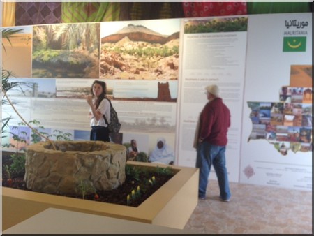 Le visiteur découvre au milieu des palmiers : le chadouf, la corde de puisage avec le « delou » à son bout et un simulacre de puits en face… Ce système ancestral mis en place par nos aïeux pour puiser l’eau dans les oasis a été trouvé ingénieux et a marqué l’imaginaire des jeunes visiteurs d’une exposition du 21ème siècle…Il y a bien de quoi être fier de l’ingéniosité de nos prédécesseurs, comme l’a fait remarquer le président de la République lors de la visite qu’il a effectuée au Pavillon le 24 juillet dernier, lors de la Journée nationale de la Mauritanie.