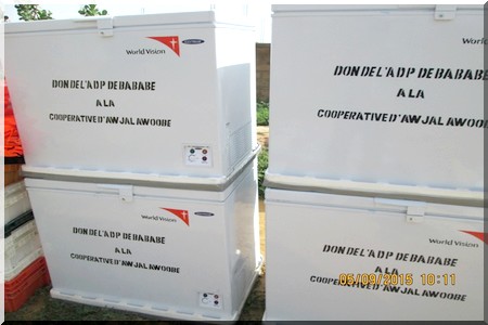 Elfoutiyou - Le siège de la World Vision à Bababé a accueilli le samedi, 5 septembre 2015, une cérémonie de réception d’un important don de matériel de pêche composé de 5 pirogues, 4 congélateurs, 3 charrettes et 3 ânes, 45 gilets de sauvetage équipés de sifflet, 45 lampes marines, des filets de pêche, 45 pairs de bottes, 45 pairs de gants, 10 glacières, 10 caisses de manutention de poisson, 3200 mètres de filets de pêche, une grande quantité d’hameçon ainsi que leurs accessoires au profit de la coopérative "Awdial Awoobé".