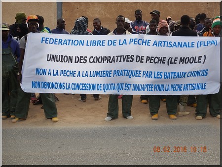 Les frondeurs ont demandé aux autorités d'interdire la pêche à la lumière pratiquée par les bateaux chinois. « Nous nous élevons contre ce genre de pratiques qui à la longue finiront par entraîner une destruction massive de nos ressources halieutiques.
