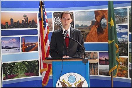 US Embassy - Monsieur James Ryan Grizzle, Conseiller pour les Affaires Publiques Chargé des Affaires Culturelles a organisé ce matin à l’Ambassade des Etats-Unis d’Amérique, une réception en l’honneur de 20 étudiants mauritaniens qui ont été sélectionnés pour poursuivre des études aux Etats-Unis dans le cadre des programmes de bourses « Fulbright», « Humphrey », « Global UGRAD » et « Pan Africa Youth Leadership Program».