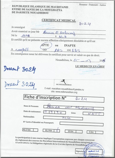 Réponse : Il y’a aussi la Direction Régionale de la Santé de Nouadhibou (DRS) surtout les médecins, infirmiers que nous remercions pour leur collaboration et leur disponibilité. Il faut le reconnaitre la DREN et la DRS travaillent avec le marathon depuis plus 5 ans. Cette collaboration a permis à notre marathon de faire courir des adolescents mauritaniens dans de bonnes conditions et de créer chez eux dès leur jeune âge la pratique et l’amour du SPORT pour leur développement et épanouissement. Nous venons de très loin et avons constaté que travailler directement avec des adolescents s’est révélé difficile et compliqué. C’est cette raison qui fait que nous souhaitons que les coordinateurs des établissements scolaires qui les connaissent, les gèrent depuis leur inscription jusqu’aux bus qui les retournent aux établissements scolaires de Cansado et des quartiers éloignés à la fin des courses (voir le dossier du dossard 3024 et la 1ére page de la lycée Ndb 1).
