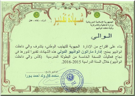 Réponse : Dans ma compréhension, c’est une reconnaissance de la Direction Régionale de l’Enseignement Nationale (DREN) aux activités de notre marathon. Depuis 5 ans notre marathon travaille avec Madame Savia BAMBA Directrice la DREN en étroite collaboration, d’ailleurs nous sommes liées par une convention de partenariat signée depuis 2 ans. A cela il faut ajouter que Mme Savia BAMBA est une grande Dame très impliquée dans le social et le sport scolaire. Le sport scolaire fait partie des priorités du Marathon International de Nouadhibou.