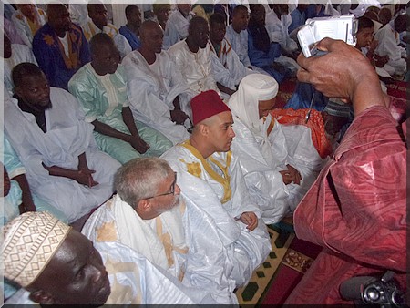 Chérif Tayib, arrière, arrière, petit fils du fondateur de la confrérie tidiane, Cheikh Ahmed Tidiane Chérif, en visite chez nous, a prié l’aïd el fitr à la deuxième mosquée de Nouakchott (de par l’âge), sise aux ilots L, avec le vieux Thierno Daouda Bâ.