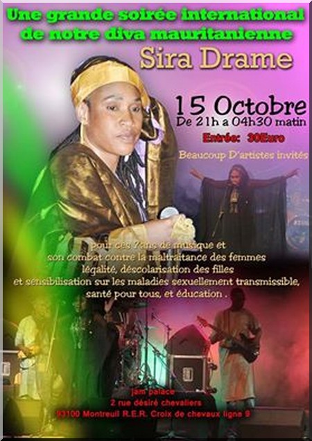 Cridem Culture - Ambiance mauritanienne ce samedi 15 Octobre à Paris pour l’anniversaire de la chanteuse mauritanienne Sira Dramé, originaire de Sélibabi, qui vit actuellement dans la capitale française.