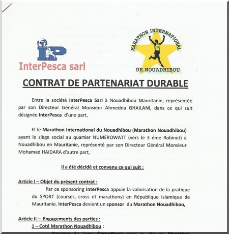 B – : InterPesca Sarl remettra à 2 mois avant la date du marathon chaque année 300 000UM (trois mille ouguiyas) et 4 banderoles.