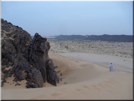 J’ai écouté le silence. La douceur du silence me faisait entendre la symphonie du vent jouant ses notes musicales aux caresses des feuillages, aux frôlements des crêtes de dunes et aux chatouillements taquins des vallons et lits de Batha. Un bain de sérénité qui débarrassait en moi, mine de rien, les parasites, acouphènes et autre traumatisme acoustique lié au vieillissement des oreilles.