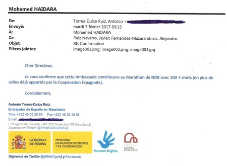 Marathon de Nouadhibou - L’Ambassade du Royaume d’Espagne fournit 200 (deux cents) T-shirts (voir l’e-mail de l’Ambassadeur),