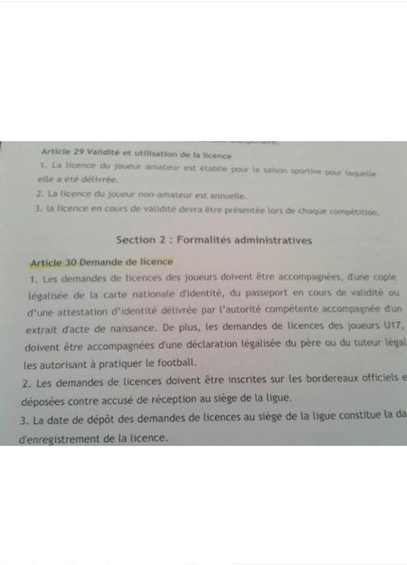 1-les demandes de licences des joueurs doivent être accompagnées d’une copie légalisée de la carte nationale d’identité, du passeport en cours de validité ou d’une attestation d’identité délivrée par l’autorité compétente accompagnée d’un extrait de naissance.