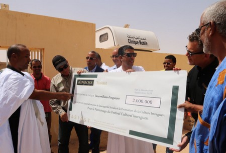 Le Directeur Général de Tasiast a enfin remis un chèque symbolique de 2 millions d’Ouguiyas (5.600 dollars US) pour le festival Imraguen qui vise à renforcer la culture du pêcheur Imraguen du Parc National du Banc d’Arguin et qui sera organisé à Chami fin Octobre 2017. Daniel Marini a expliqué qu’en « plus de la santé, de l’éducation et de l’accès à l’eau, Tasiast désire s’associer à ce complément d’âme qui peut nous procurer un accès à l’art ».