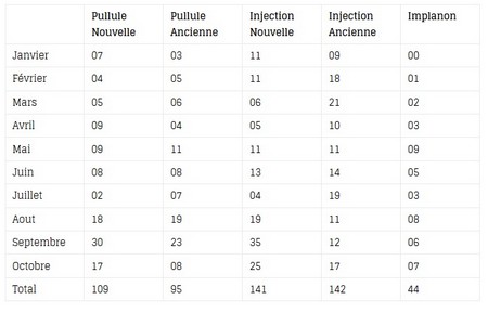 Source : Service Planification Familiale Centre de Santé de R’Kiz (le 3 Novembre 2017)