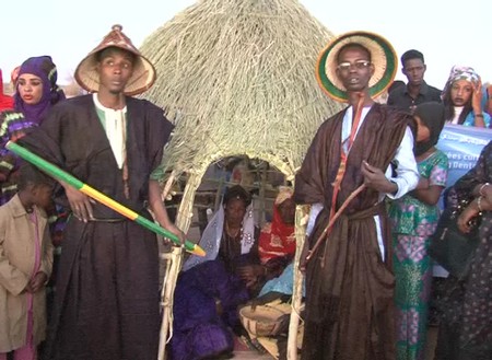 C’est le Wali Mouçaîd qui a donné le coup d’envoi du défilé culturel de Dental à Goural. En compagnie des autorités présentes, l’artiste va visiter des stands. Une case construite de tiges de bambou à l’intérieur de laquelle, se trouvait un couple de mariés.
