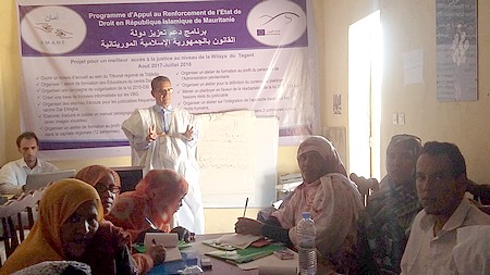 En effet, la subvention du projet "Etat de droit" (sis Ministère mauritanien de la Justice), dans le cadre du Programme d’Appui au Renforcement de l’Etat de droit en République Islamique de Mauritanie (Engagement financier global n° FED/2012/024-220, Engagement financier individuel n° FED/2015/367-554), de l’Union Européenne : a offert à l’ONG l’occasion de :