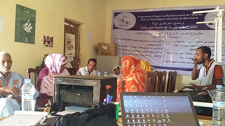 L’opérationnalisation du bureau d’accueil et d’information juridique mais aussi d’aide judiciaire de Tidjikja a permit d’approcher les personnes démunis de la justice. Des formations sont organisées qui permettent de consolider les compétences du personnel et points focaux du centre Dar Ethigha de N’beika (éducatrices, para juristes, etc…) et de les doter des principaux outils leur permettant d’agir pour la sécurité juridique des justiciables et à leur prise en charge. D’autres catégories en situation de vulnérabilité ciblées par projet sont également informées sur leurs droits de l’homme.