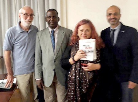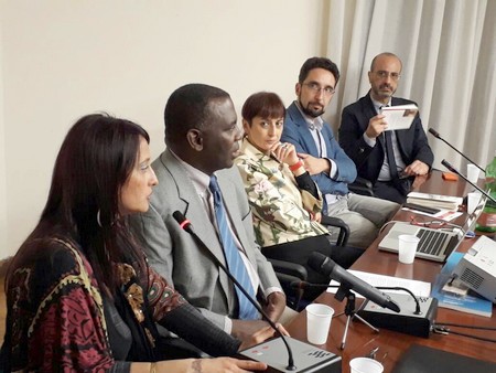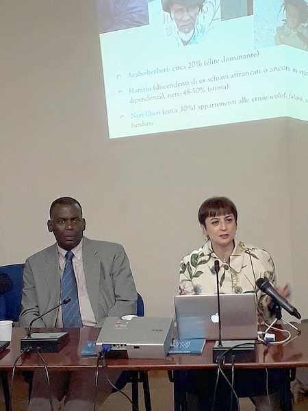 IRA-Mauritanie - L'auteur de l'ouvrage est Maria Tatsos, est présente au siège de la Stampa Italiana, la maison d'édition qui abrite l'événement ainsi que les auteurs de la préface et de la postface de cet ouvrage sur la trajectoire de Biram Dah Abeid et de son organisation IRA-Mauritanie : le responsable de Amnesty-International Italie, Giusepe Maimoune, et un universitaire anthropologue, spécialiste de l'esclavage, et ayant travaillé sur la Mauritanie.