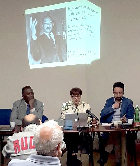La cérémonie ouverte par la vice-présidente de Stampa Italiana, et le modérateur, qui représente la maison d'édition Paoline, donne la parole au responsable d’Amnesty international. Ce dernier loue l'engagement de Biram Dah Abeid qu'il qualifie de défenseur de droits humains, incorruptible et plein d'abnégation, digne héritier de Nelson Mandela.