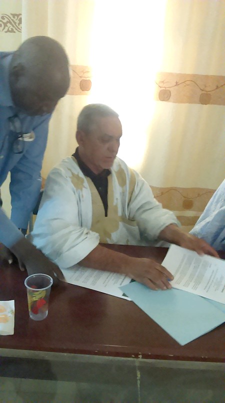 CCME - Le mardi, 15 mai 2018, a eu lieu à Rosso, région du Trarza, la signature d’un mémorandum entre le Collectif des Cadres Mauritaniens Expatriés (CCME) et la Mairie de Rosso, l’Association des parents d’élèves, l’Inspection Départementale de l’Eduction Nationale (IDEN), la Direction de l’Ecole I de Rosso, en présence du Conseiller du Wali, du Hakem de Rosso, des membres de la délégation du CCME.