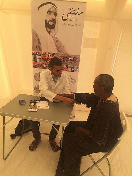 Pour ce faire, un important dispositif a mis en place : un dispensaire de campagne, avec une équipe de volontaires émiratis et mauritaniens, un cabinet médical dans un camion médicalisé.