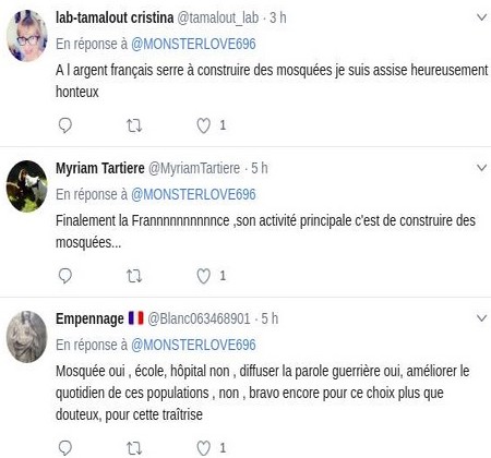 Empennage : « Mosquée oui, école, hôpital non, diffuser la parole guerrière oui, améliorer le quotidien de ces populations non, bravo encore pour ce choix plus que douteux, pour cette traîtrise ».