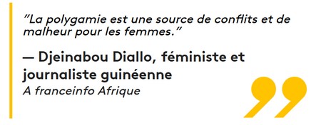 Francetvinfo - Le nouveau code civil guinéen qui légalise la polygamie suscite une vive polémique. Il autorise les hommes à épouser jusqu'à quatre femmes et leur confère le droit d'être les seuls à choisir entre la polygamie et la monogamie.