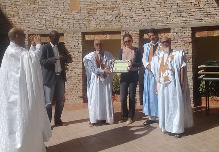 A l’issue de cette rencontre cordiale, Mohamed Abdallahi BELLIL a remis à Mme Adeline un certificat d’excellence qui lui est décerné par le président de l’ONG OMASSAPE au nom du Groupe Noyau des OSC/Secteur Extractif.