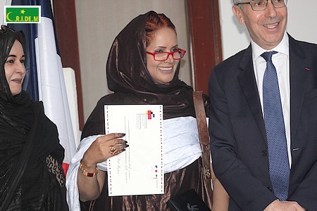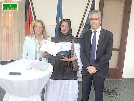 La cérémonie s’est déroulée à l’ambassade d’Allemagne, en présence de Mme Gabriela Guellil, ambassadeur d’Allemagne et M. Robert Moulié, ambassadeur de France, qui ont remis ensemble le prix franco-allemand des droits de l’homme et de l’Etat de droit à Mme Mekfoula Mint Brahim.