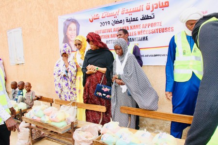Cette cérémonie donnait le coup d’envoi de l’opération Ramadan de cette initiative, créée par Mme Aissat Kane, activiste politique et humanitaire. Ces kits étaient composés de sucre, de lait, de dattes et de sardines.