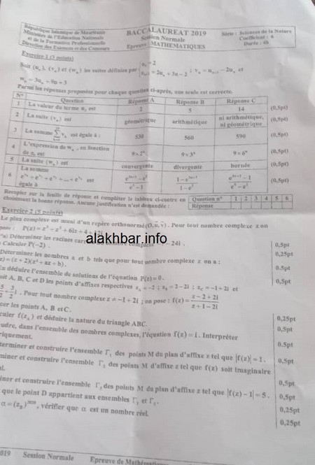 Al-akhbar – L’épreuve des mathématiques au Bac Scientifique (D), a été distribuée le lundi après-midi 10 juin courant, aux candidats des lettres modernes, au niveau de certains centres d’examen de la wilaya du Hodh Charghi.