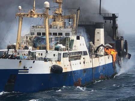 25-07-2019 23:54 - Séries de sinistres en haute mer : 80 marins dont des mauritaniens sauvés d'un bateau de pêche en feu